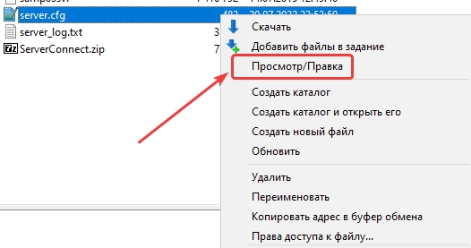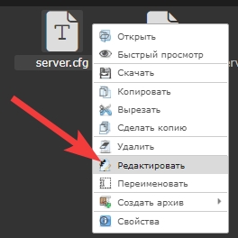 Нажмите ПКМ по файлу server.cfg;