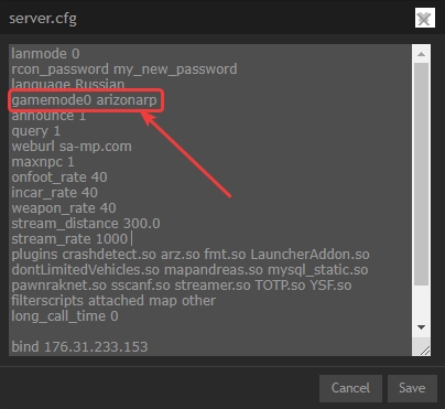 Переносим файл на FTP в папку gamemodes;